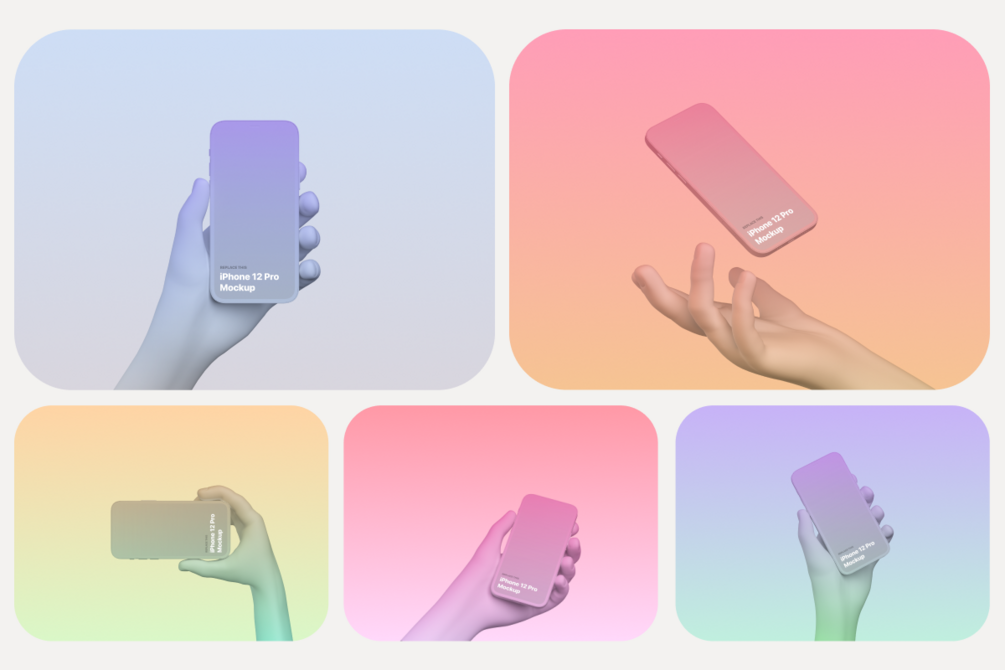 Make your iOS apps stand out on App Store, Social Media Ads, and Landing Pages with 3D iPhone 12 pro mockup for Figma & Sketch. Inclusive Hands holding the phone. Customizable colors. Multiple poses. 30 mockup variations in 4000x3000px.